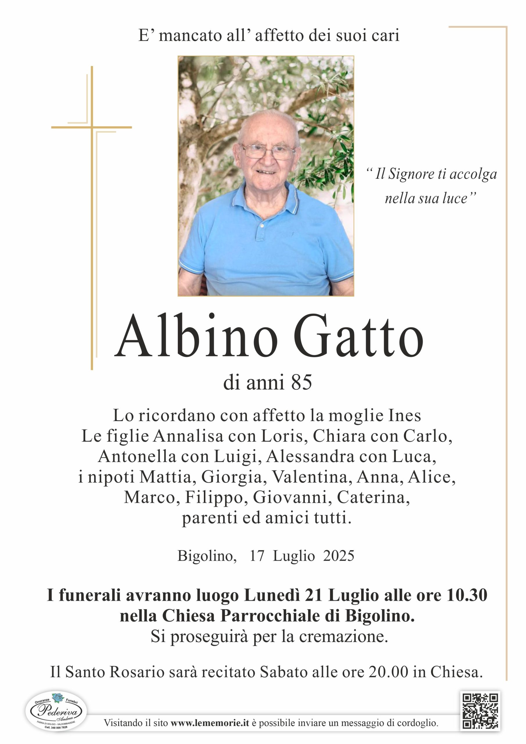 I funerali avranno luogo Lunedì 21 Luglio alle ore 10.30 nella Chiesa Parrocchiale di Bigolino.