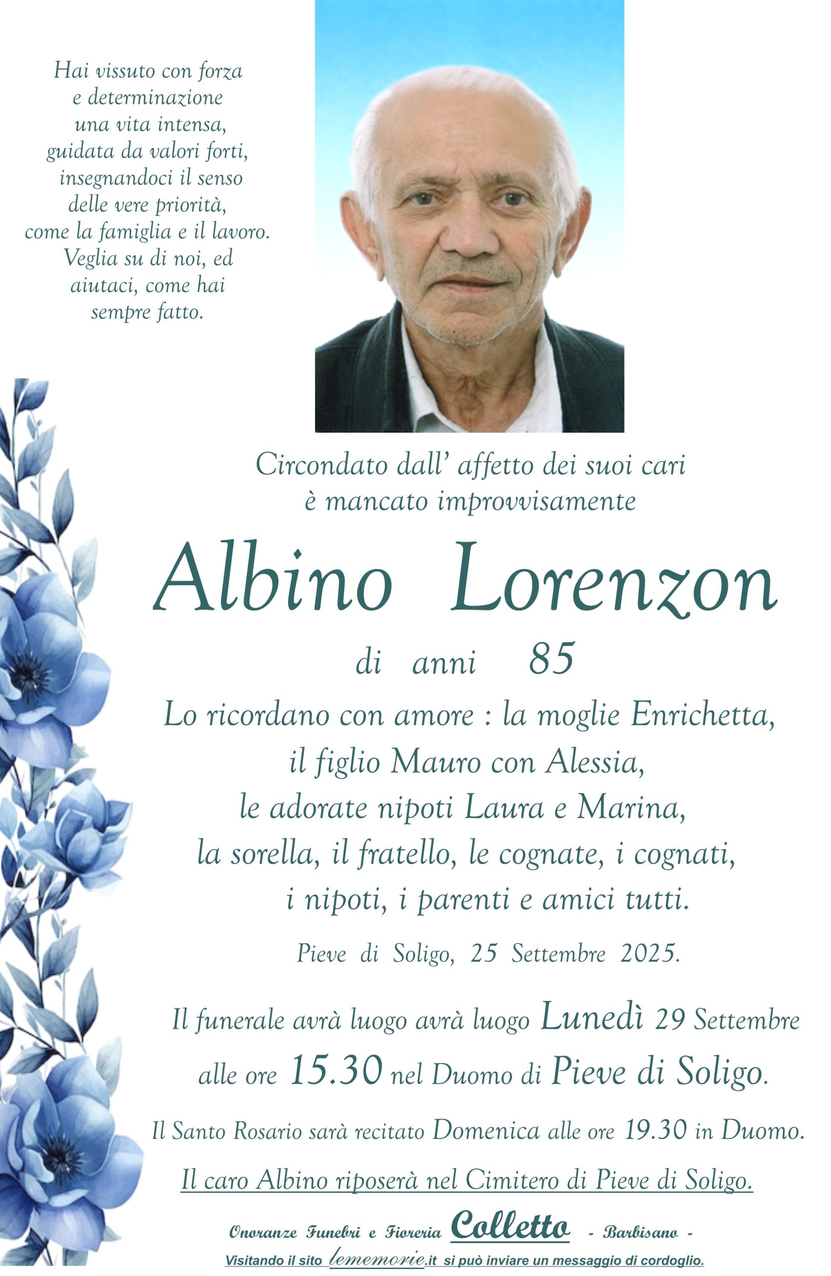 Il caro Albino riposerà nel Cimitero di Pieve di Soligo.