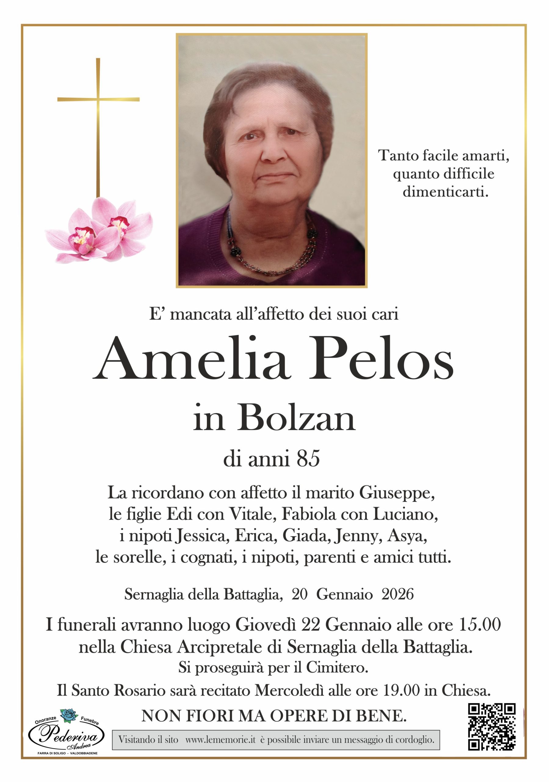 I funerali avranno luogo Giovedì 22 Gennaio alle ore 15.00 nella Chiesa Arcipretale di Sernaglia della Battaglia.
