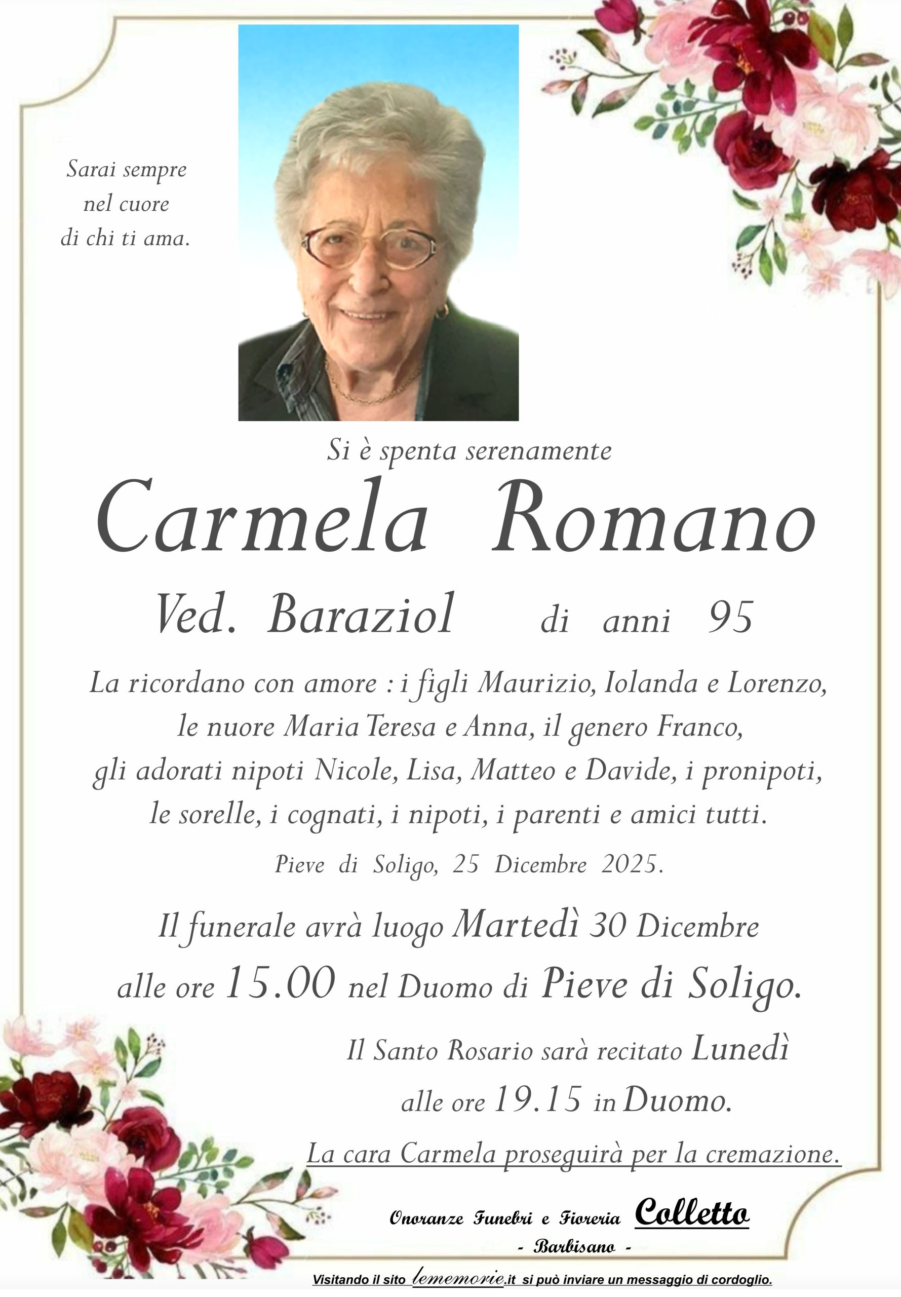 Il funerale avrà luogo Martedì 30 Dicembre alle ore 15.00 nel Duomo di Pieve di Soligo.