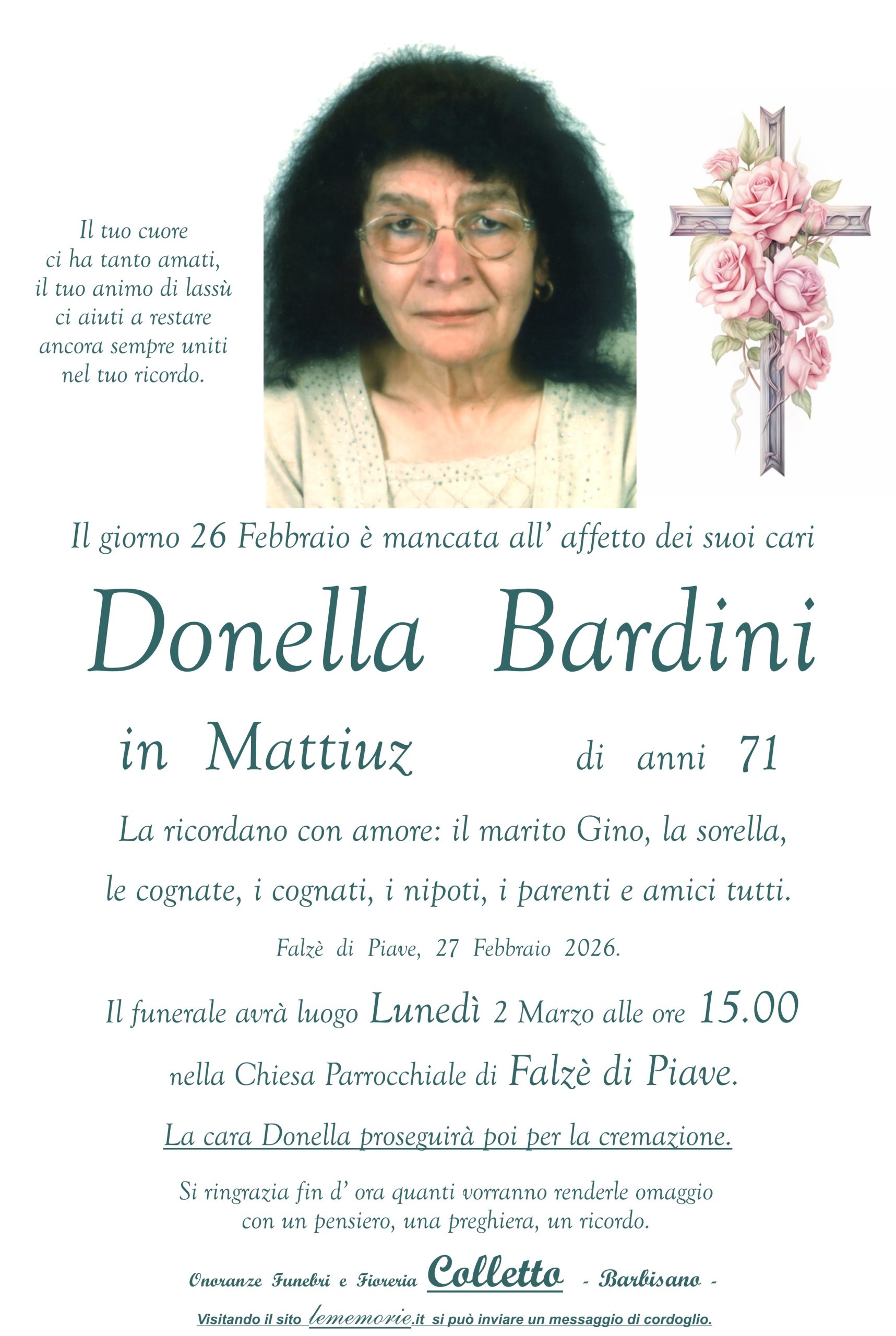 Il funerale avrà luogo Lunedì 2 Marzo alle ore 15.00 nella Chiesa Parrocchiale di Falzè di Piave.