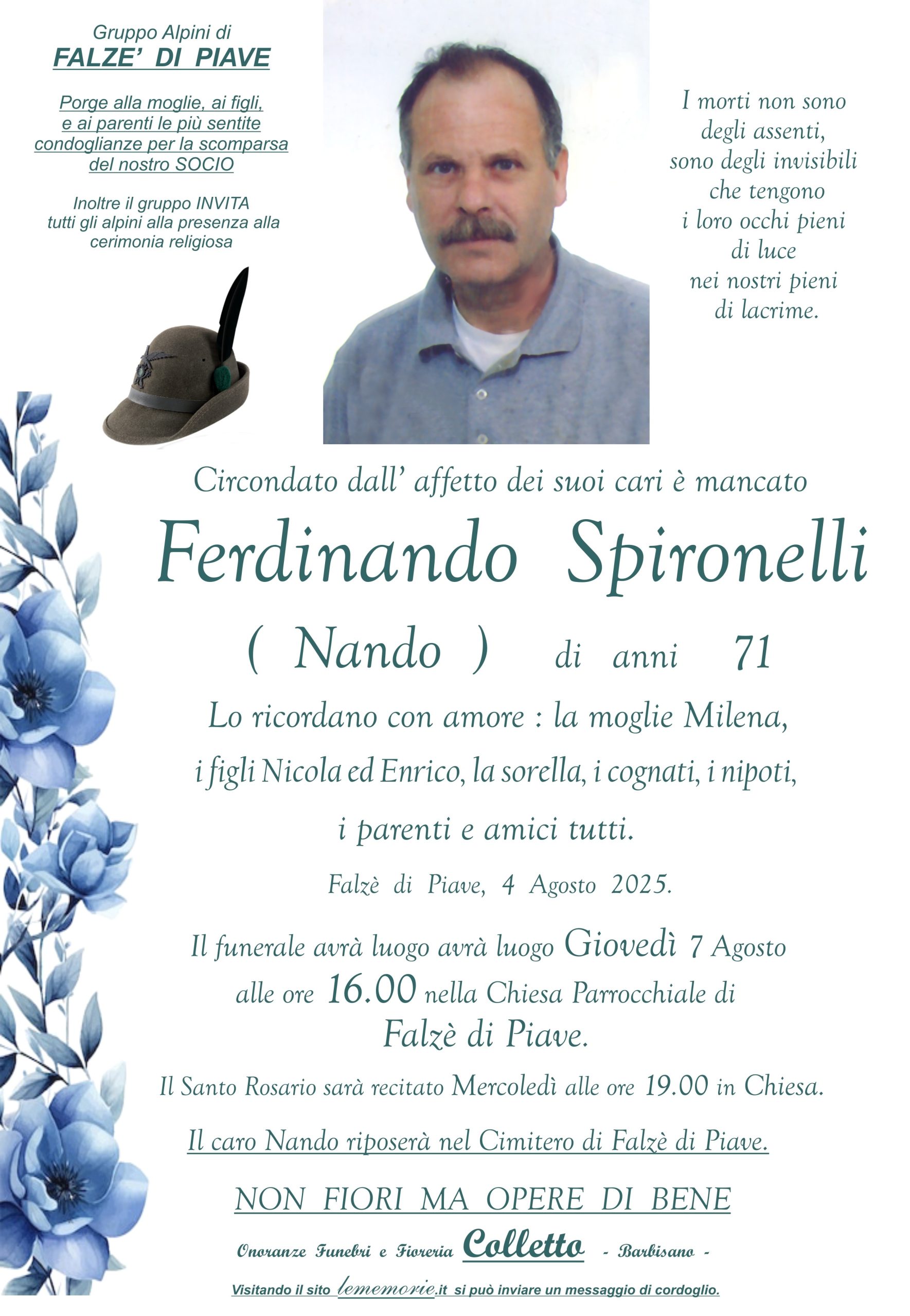 Il caro Nando riposerà nel Cimitero di Falzè di Piave.