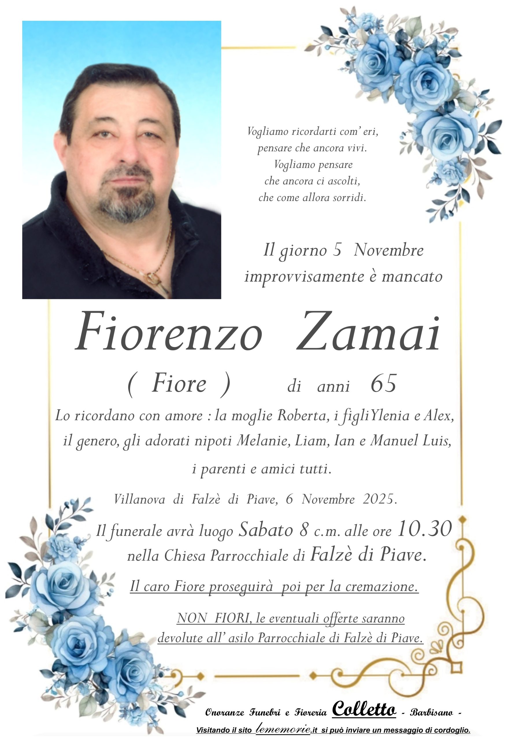 Il funerale avrà luogo Sabato 8 c.m. alle ore 10.30 nella Chiesa Parrocchiale di Falzè di Piave.