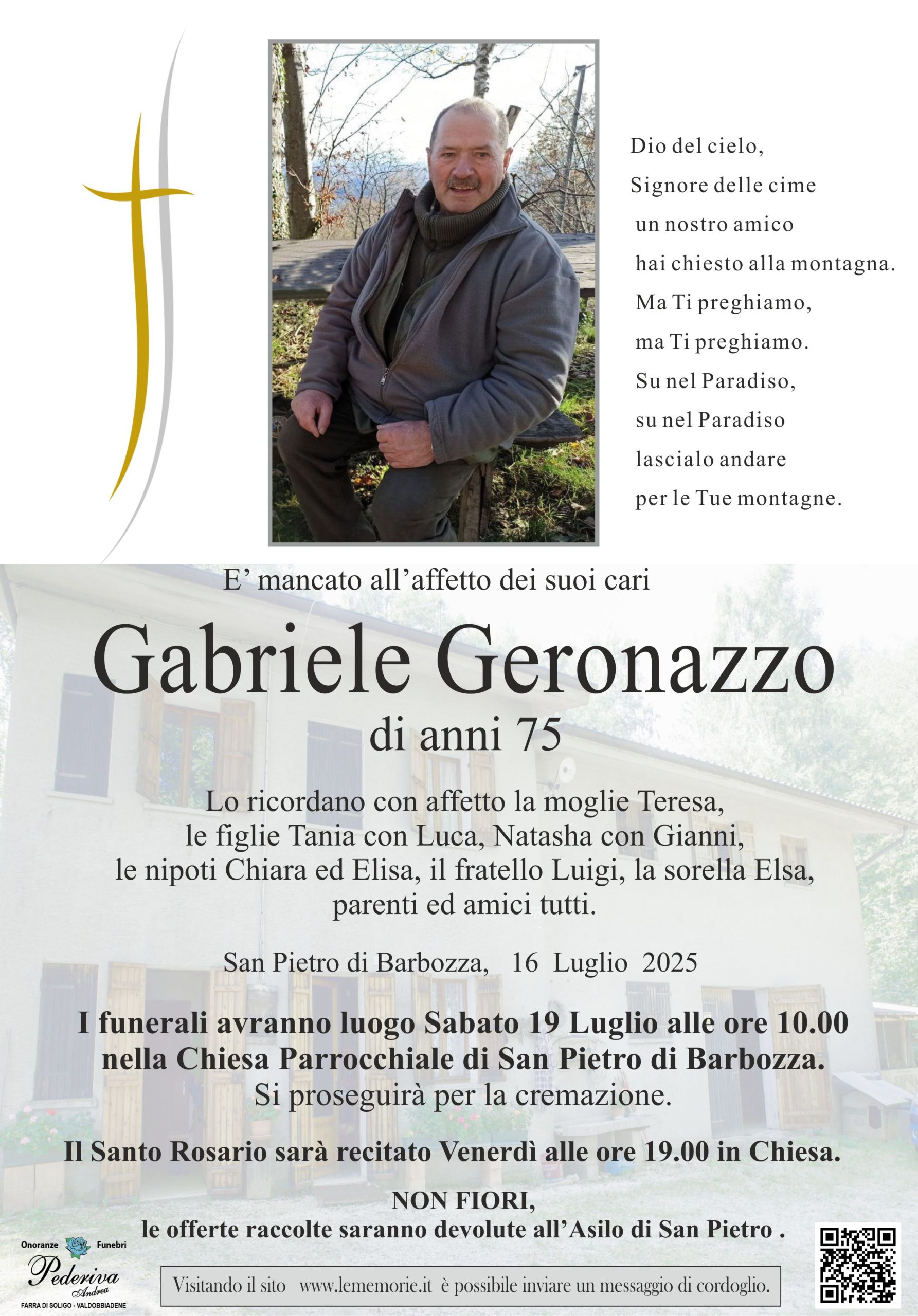 I funerali avranno luogo Sabato 19 Luglio alle ore 10.00 nella Chiesa Parrocchiale di San Pietro di Barbozza.