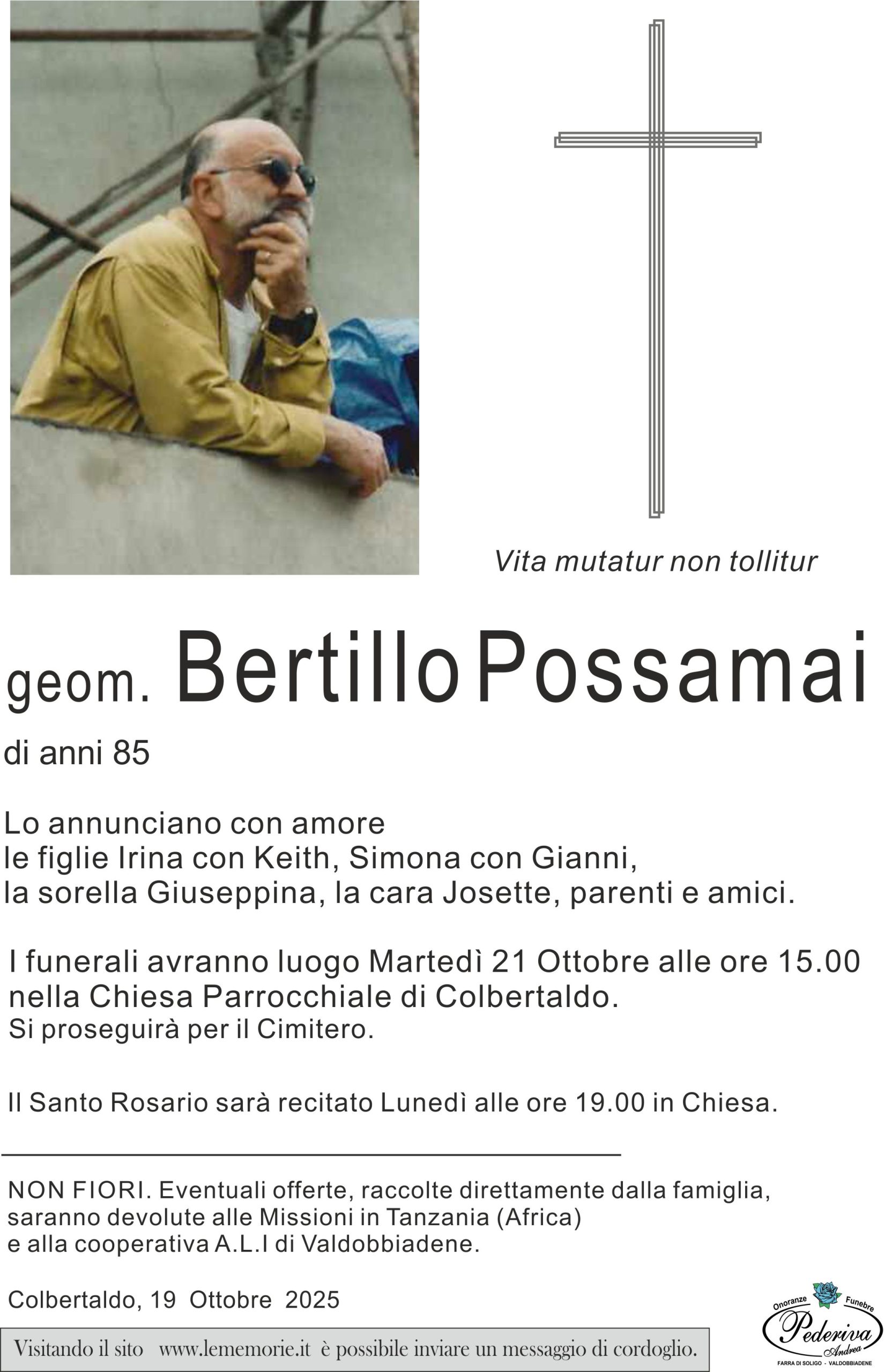 I funerali avranno luogo Martedi 21 Ottobre alle ore 15.00 nella Chiesa Parrocchiale di Colbertaldo.