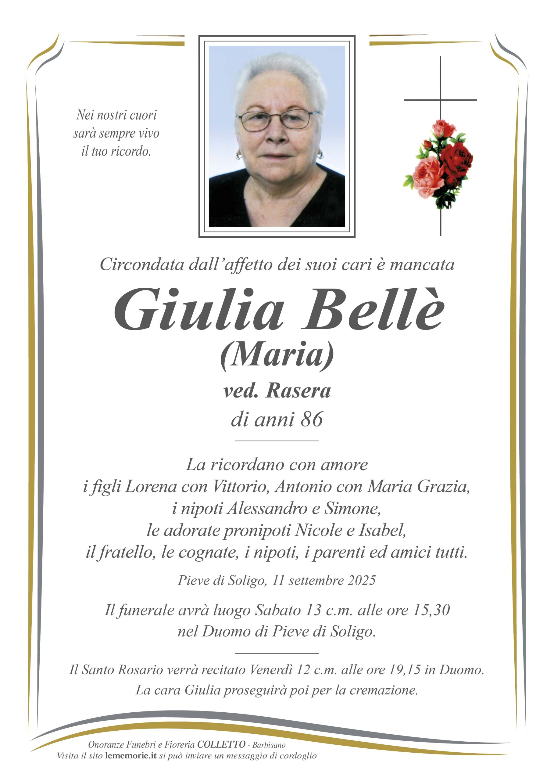 Il funerale avrà luogo Sabato 13 c.m. alle ore 15,30 nel Duomo di Pieve di Soligo.