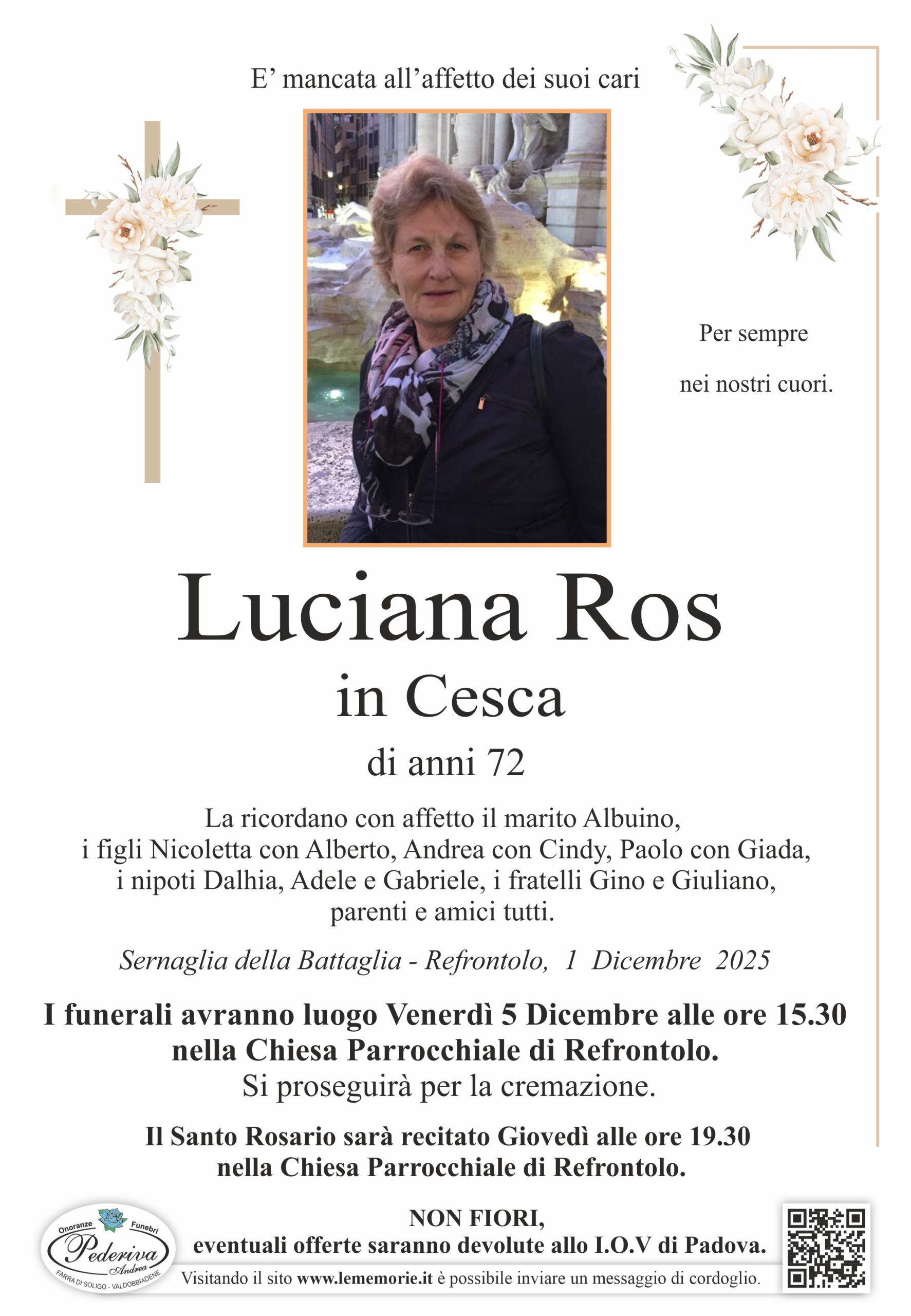 La ricordano con affetto il marito Albuino, i figli Nicoletta con Alberto, Andrea con Cindy, Paolo con Giada, i nipoti Dalhia, Adele e Gabriele, i fratelli Gino e Giuliano,