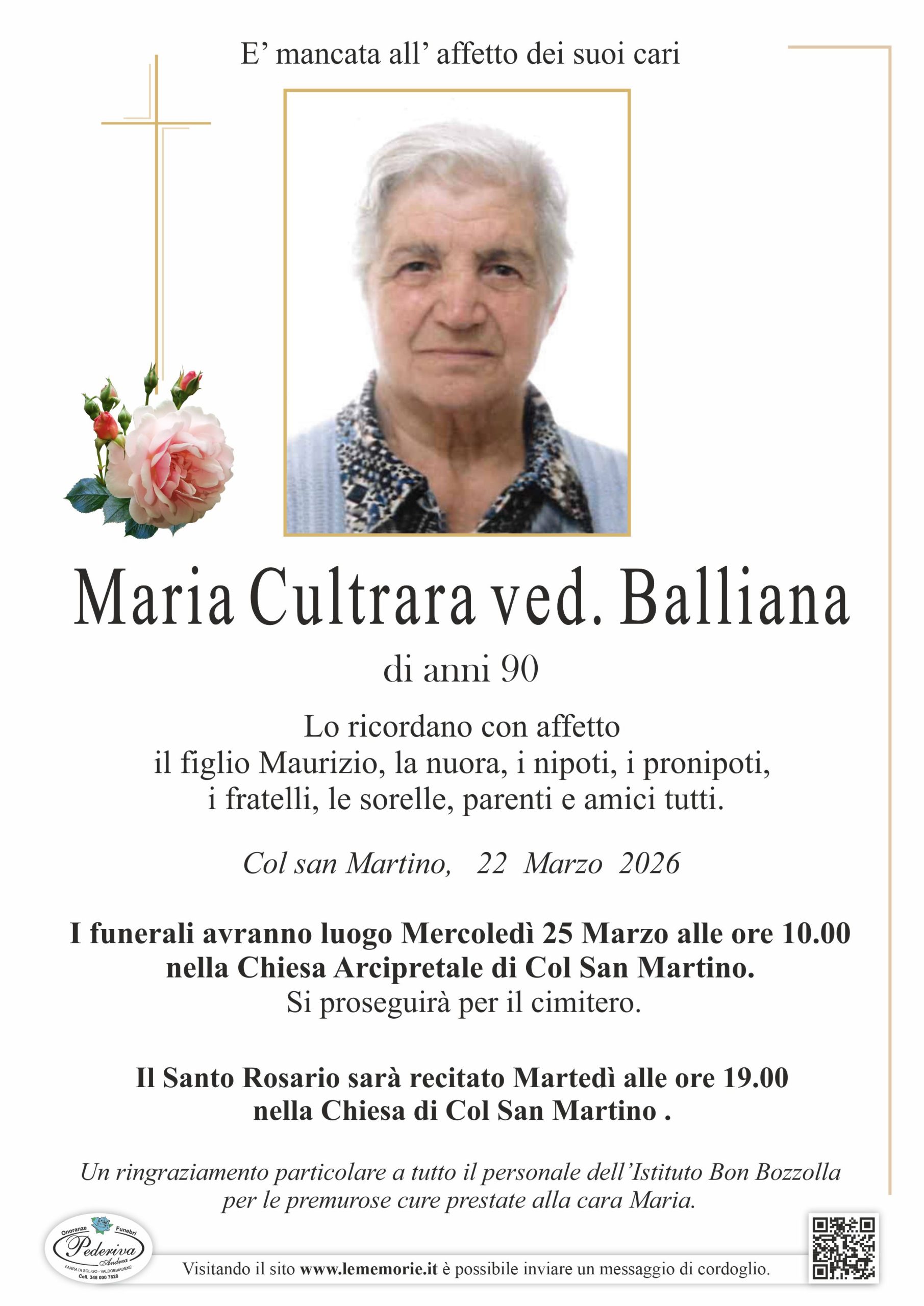I funerali avranno luogo Mercoledì 25 Marzo alle ore 10.00 nella Chiesa Arcipretale di Col San Martino.