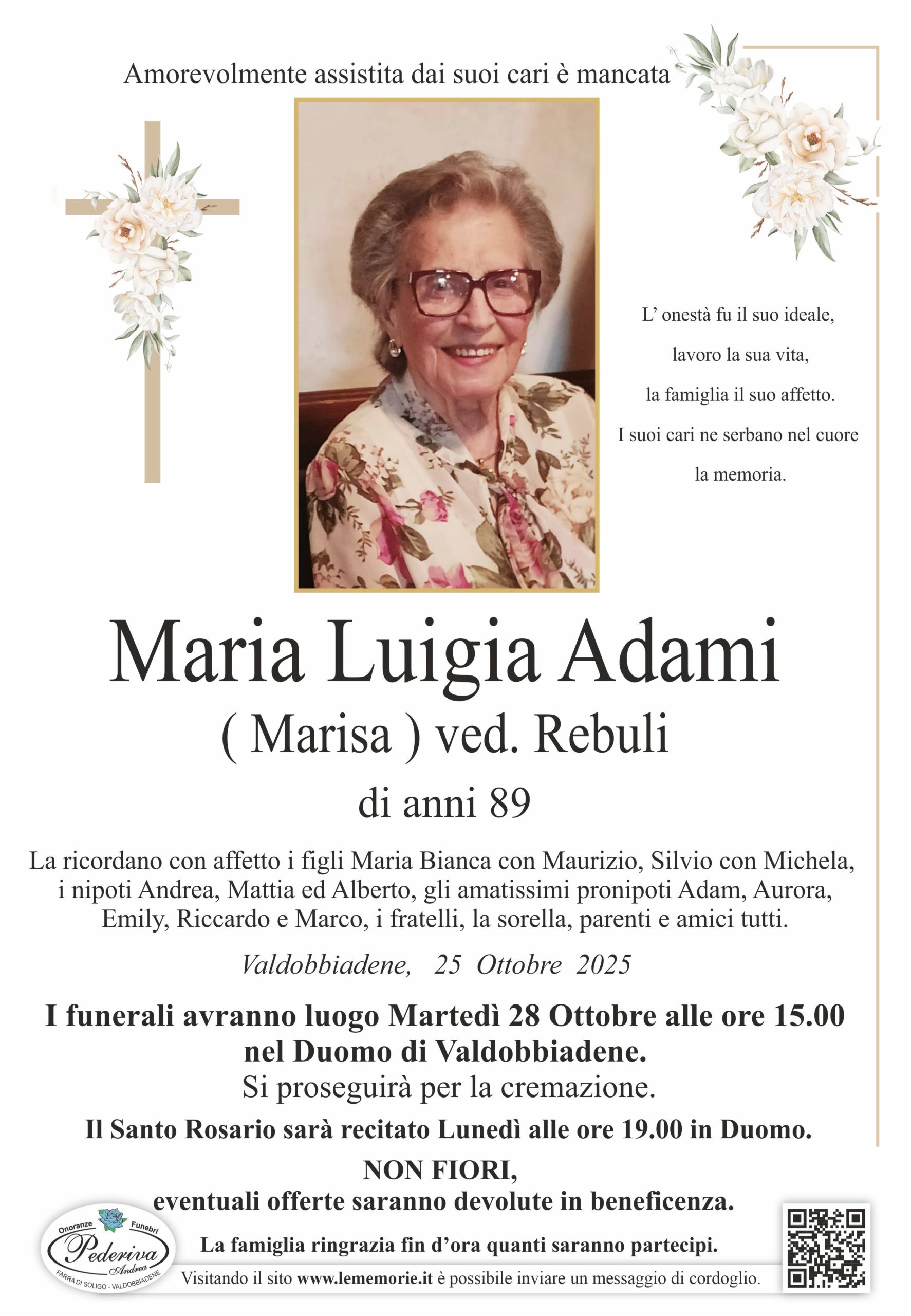 I funerali avranno luogo Martedì 28 Ottobre alle ore 15.00 nel Duomo di Valdobbiadene.