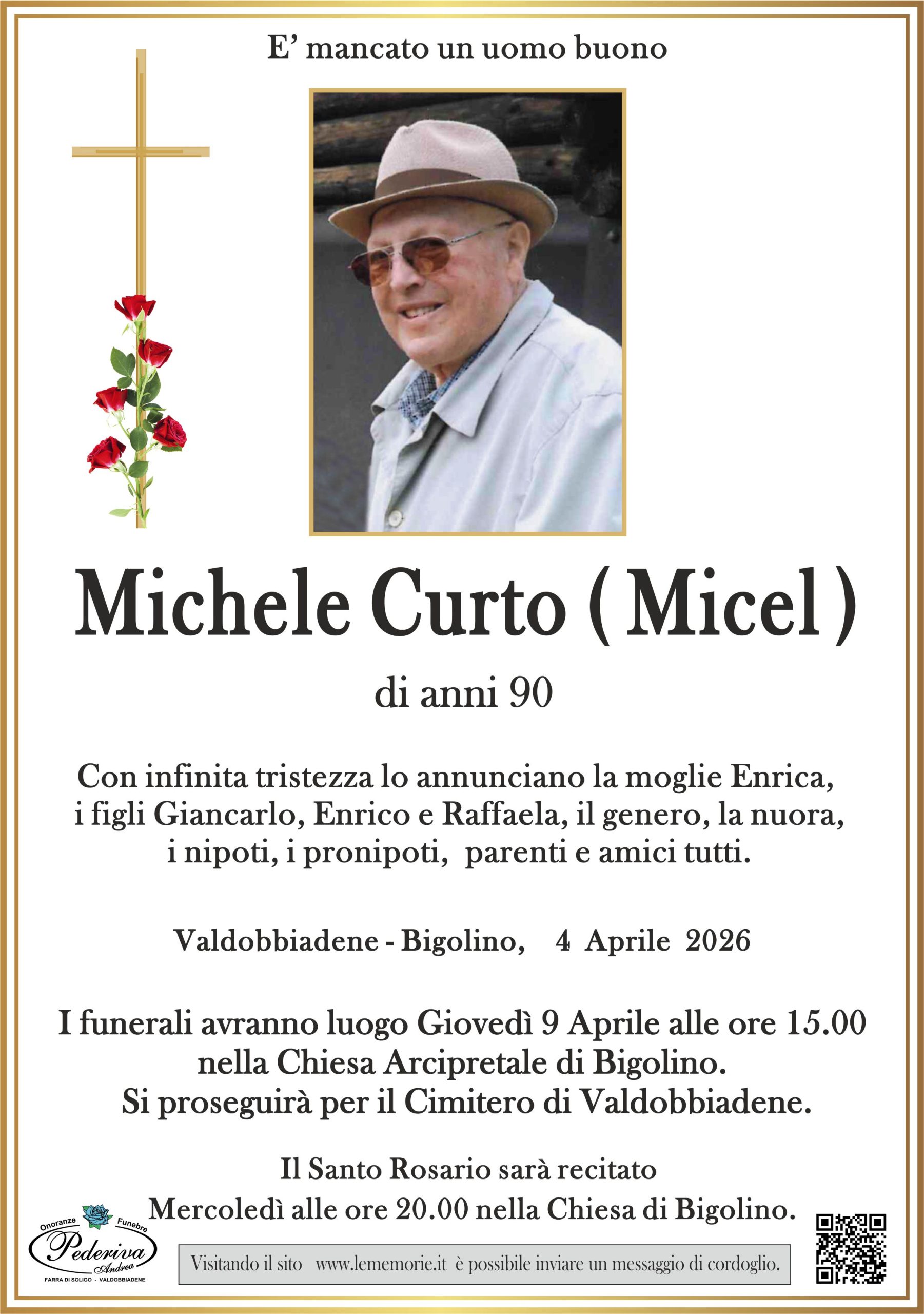 I funerali avranno luogo Giovedì 9 Aprile alle ore 15.00 nella Chiesa Arcipretale di Bigolino.