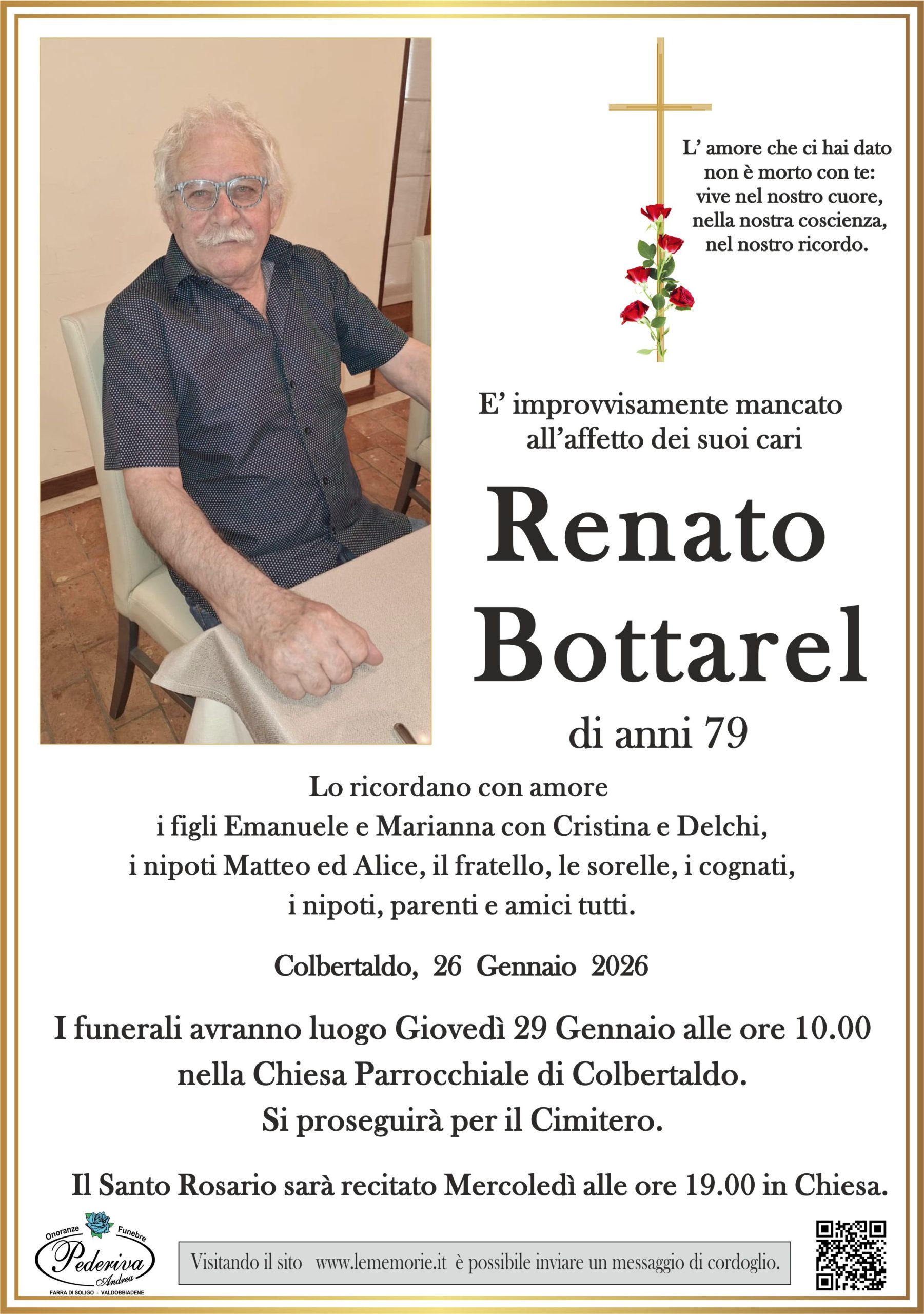 I funerali avranno luogo Giovedì 29 Gennaio alle ore 10.00 nella Chiesa Parrocchiale di Colbertaldo.