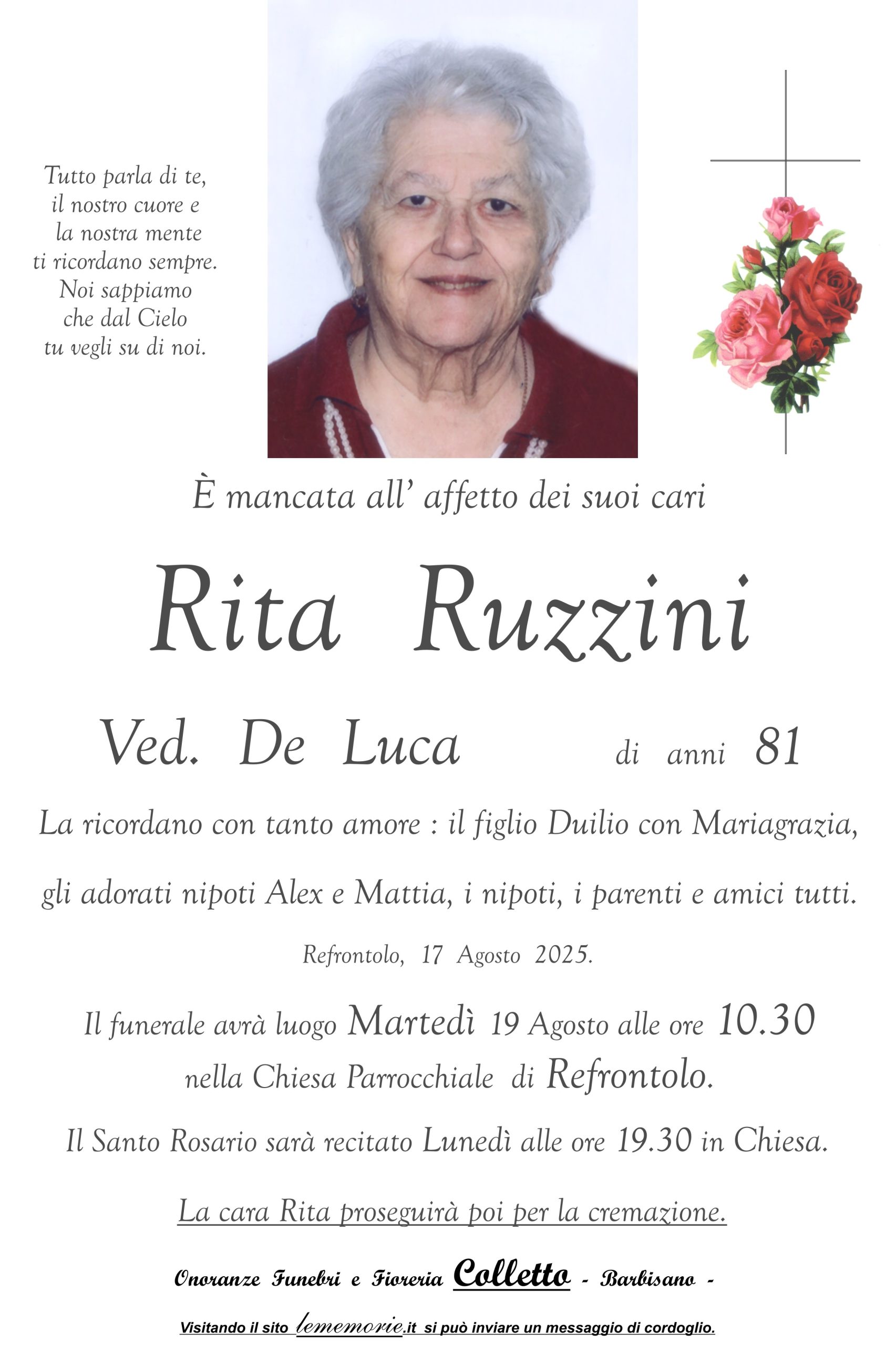 La ricordano con tanto amore : il figlio Duilio con Mariagrazia, gli adorati nipoti Alex e Mattia, i nipoti, i parenti e amici tutti.