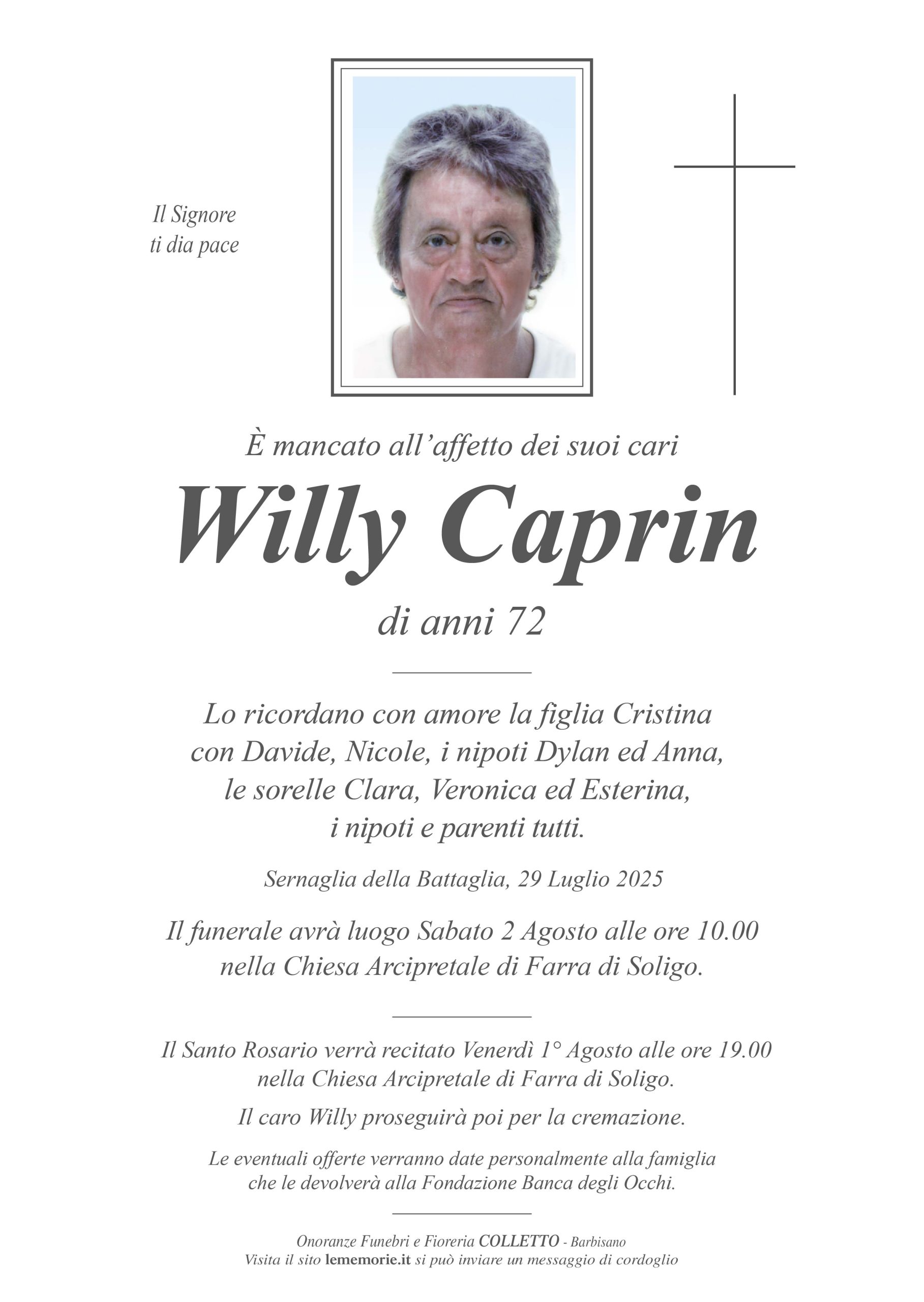 Lo ricordano con amore la figlia Cristina con Davide, Nicole, i nipoti Dylan ed Anna, le sorelle Clara, Veronica ed Esterina, i nipoti e parenti tutti.