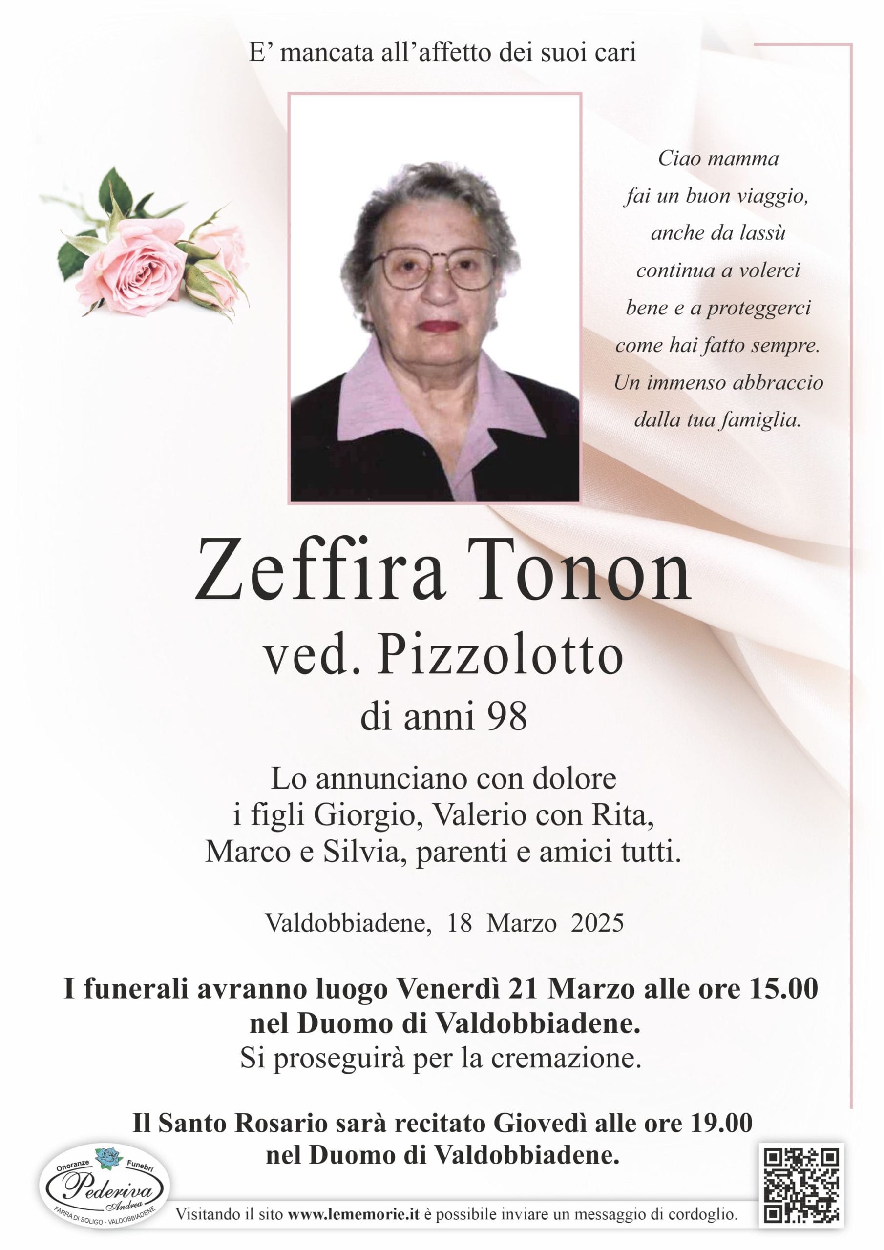 I funerali avranno luogo venerdì 21 marzo alle ore 15.00 nel Duomo di Valdobbiadene.